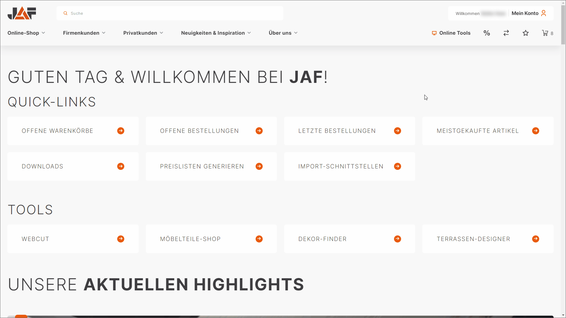 Za dostop do funkcije uvoza se s svojimi uporabniškimi podatki prijavite na spletno stran JAF. Nato odprite orodje »WebCut« s klikom na točko menija »Spletna orodja«.